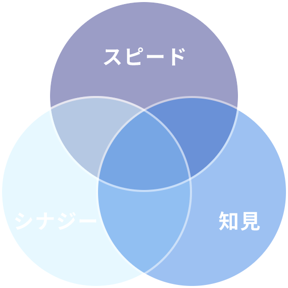 オープンイノベーションでは、新規事業立ち上げの「ノウハウ」、ベンチャーならではの「スピード」、300社以上支援した経験から各社の事業領域やビジョンに合わせた「シナジー」を生む戦略的なオープンイノベーション支援を合わせてご提供いたします。